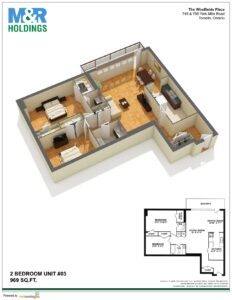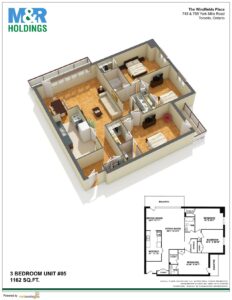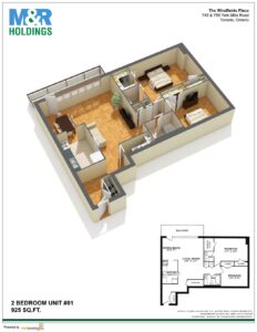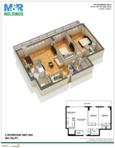 - One 2-pc. and one 4-pc. bathroom in all two bedrooms